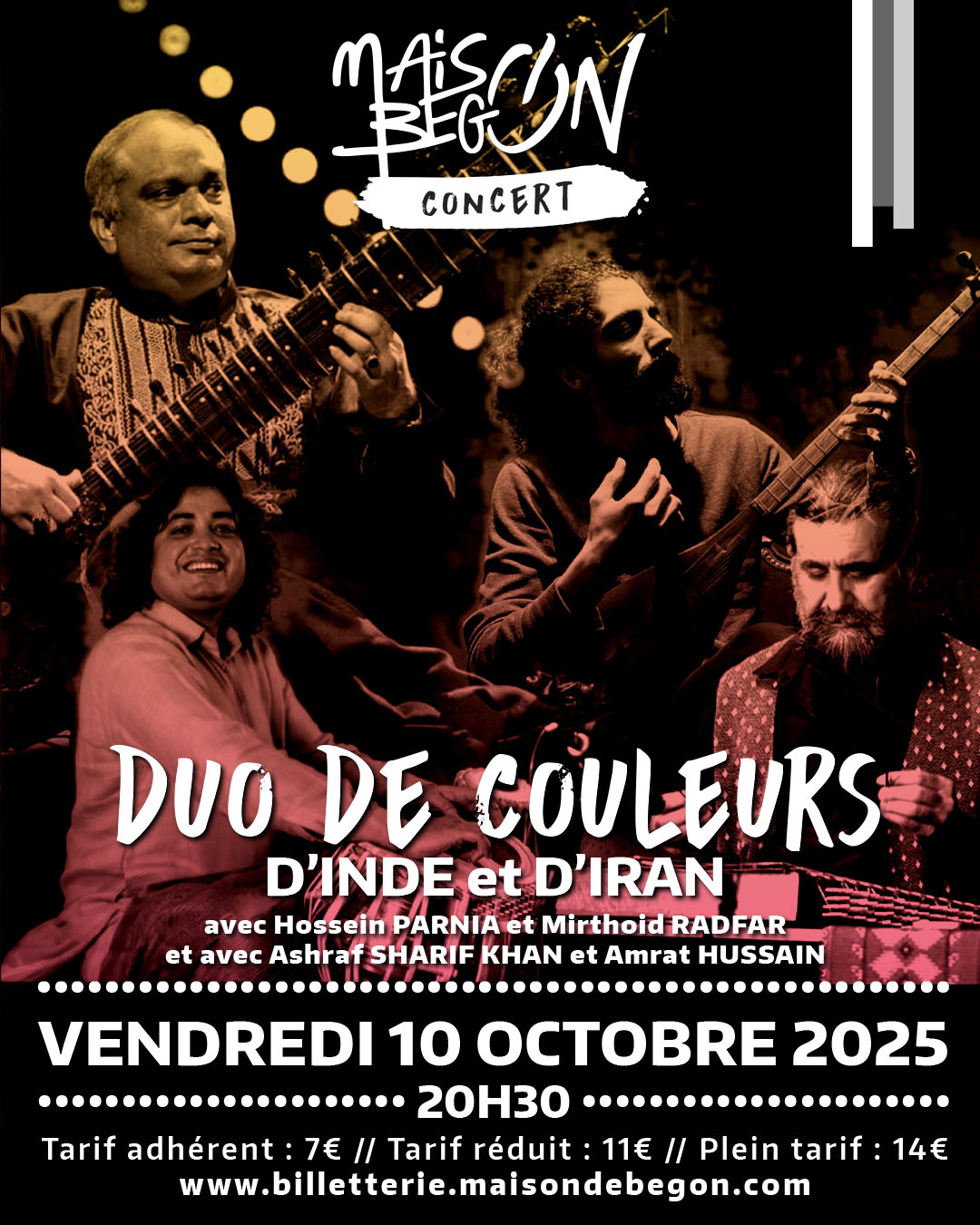 La programmation de la Maison de Bégon a pour finalité de faire découvrir la richesse culturelle d’un artiste, d’un groupe ou d’une compagnie à travers leur humanité, leur savoir, leur technique, bref leur art et leur coeur. Le monde fourmille de richesses et de fusions que nous souhaitons mettre en avant, que ce soit grâce à des artistes locaux, nationaux ou internationaux.